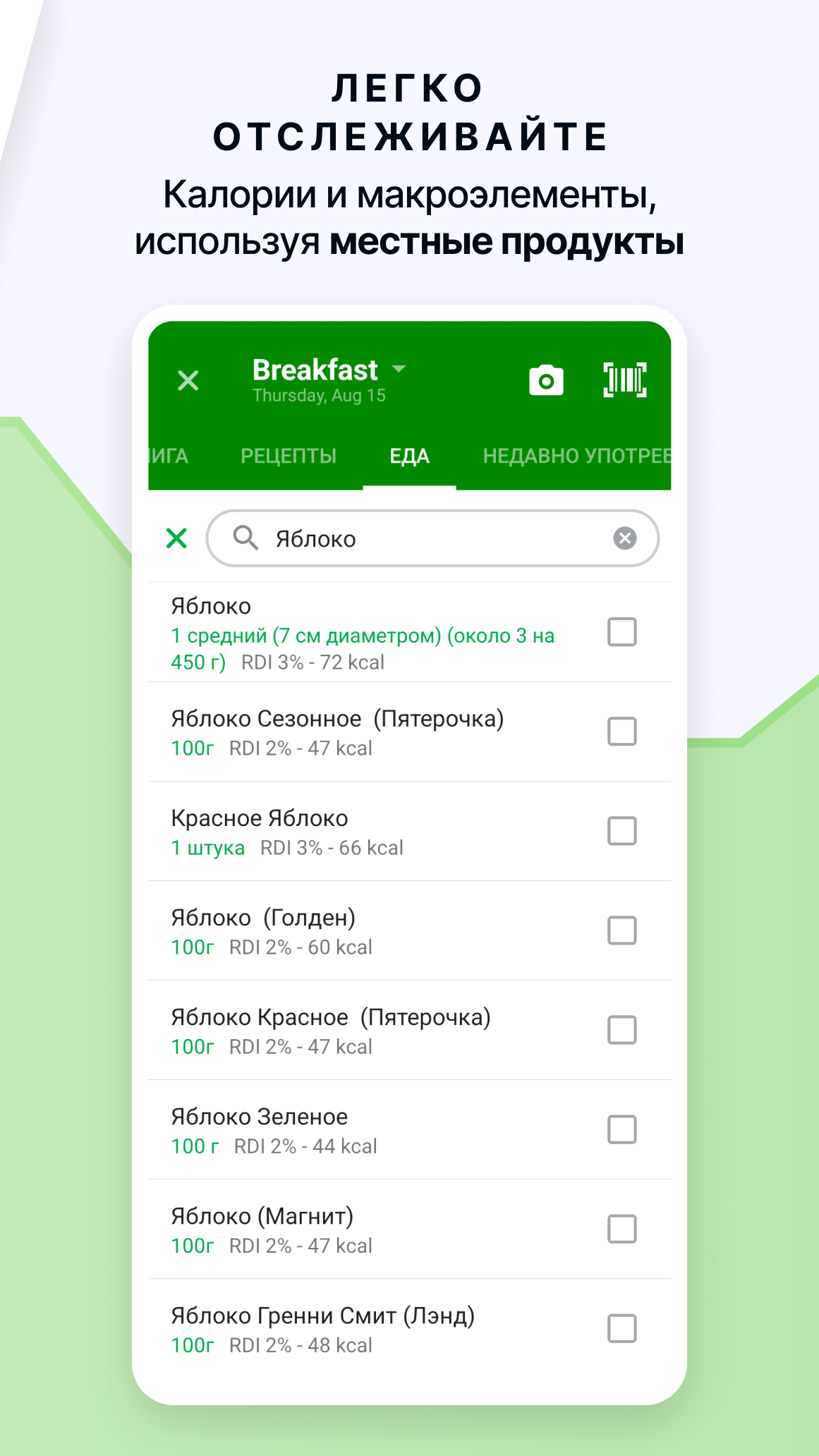 - ✅ 📱 Сканирование штрих-кодов — мгновенное добавление продуктов из базы